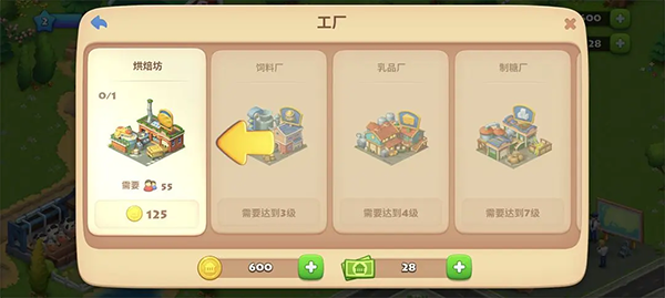 2.然后接着按引导建设房屋,增加5人口(初始人口60),增加一块农田,此时人口65,工厂解锁乳品厂、不建不用管。