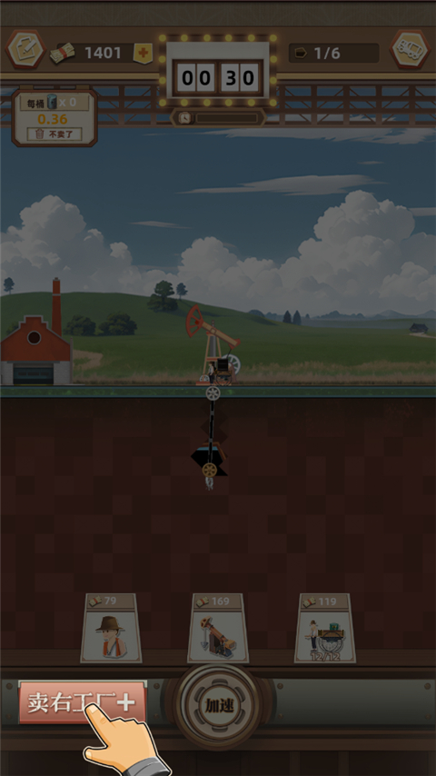 游戏中,玩家扮演一个油田开采老板,你需要不断地挖掘和开采油田资源,然后利用通过出售石油来获得金钱收益,之后用收益来建造更多的工厂和购买更多的设备,同时还需要招聘更多的员工,来帮助自己更好地管理和运营整个工厂。