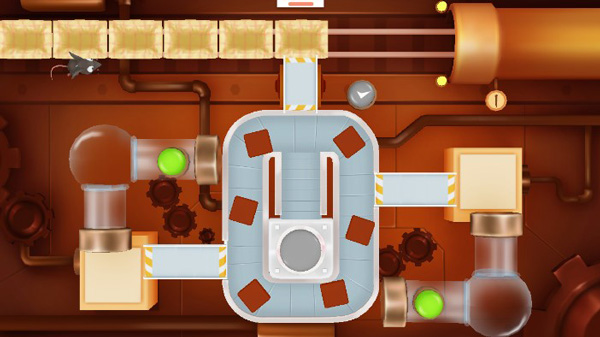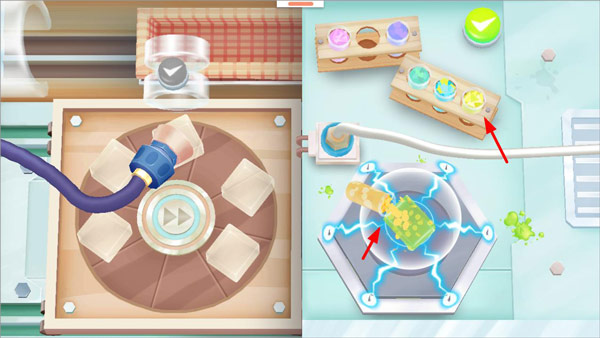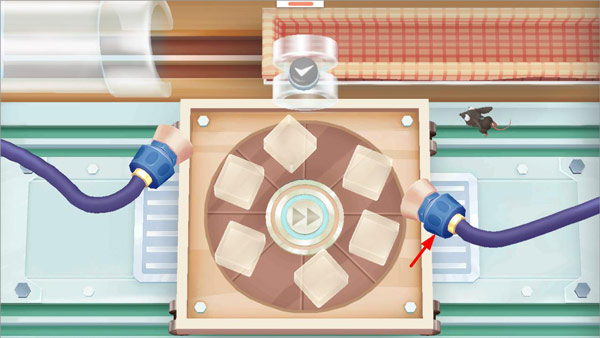2、进入果冻房玩法,玩家可以看到制作果冻的机器,在游戏中要注意老鼠偷吃,点击老鼠即可赶跑它,玩家点击左右两边的机器;