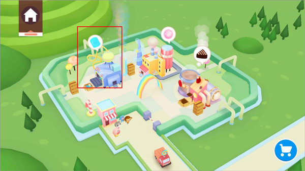 1、玩家打开熊猫博士糖果工厂游戏,可以在游戏中看到不同美食制作的工坊,有蛋糕、糖果、果冻等,玩家点击果冻房;