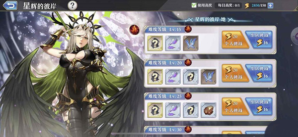 在后期我们的英雄阵容基本成型,缺少的就是装备上的提升,在星辉的彼岸中我们可以获得SSR级别的装备,极大的提高我们英雄的战斗力。(注意SSR装备只有在难度LV45以上才有,之前的星辉彼岸就是刷石头用的)
