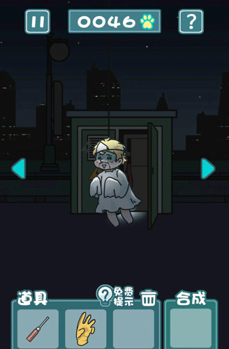 首先点击获取变电房右下角的胶皮手套,把它和最左边路灯下的螺丝刀合成得到绝缘螺丝刀。接下来趁着幽灵大叔飘走的时候拖动绝缘螺丝刀修理电箱。然后在最左边出现的卖猫粮的大叔身上获取毛线团,最后去最右边路灯下放好毛线团,切一下场景再回来就可以看到猫咪了。
