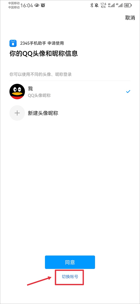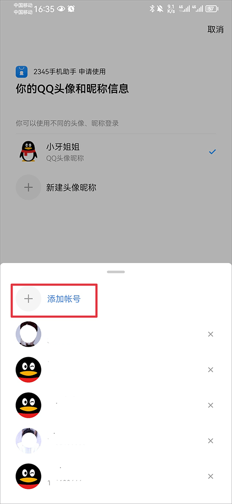 3、然后选择你要切换的qq账号,若没有账号可以点击添加账号