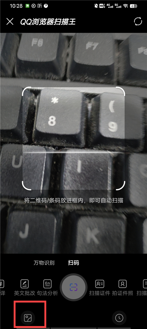 3、用户将二维码放置框内即可自动扫描,当然,你也可以点击左下角的相册图案;