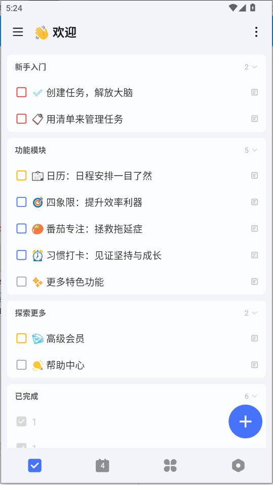 年龄一旦上来了,记忆力就特别不好,再加上有时生活上的琐事特别的多,可能前一分钟想要做好的事,后一分钟就忘了。为了避免这种情况的发生,小编今天带了滴答清单app,我们可以借助这款软件记录每天日常需要做的事,能给我们带来极大帮助,省去了许多的麻烦。此外,该软件拥有快速添加、智能识别、全能提醒、日历视图、清晰分类和共享协作等多项功能,还可以在Phone、Tablet、Wear、网页等11个平台快速同步任务,使用起来非常的方便,绝对是你生活上的好帮手。