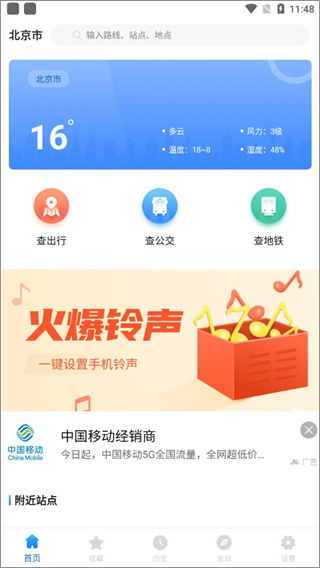 2、进入软件之后,在首页可以进行:查出行、查公交、查地铁。