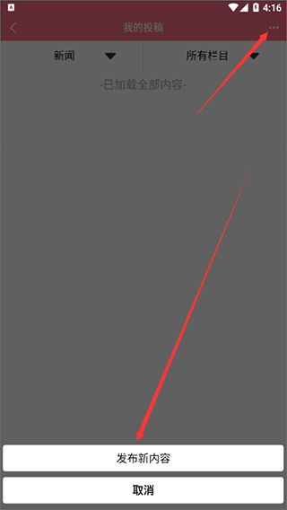 3、在“我的投稿”页面内可以查看自己所有的投稿信息,想要发布新的内容点击右上角的按钮即可;