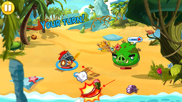 在愤怒的小鸟英雄传游戏中玩家将操控自己的角色与敌人进行对抗,本作的战斗采用了回合制战斗模式,玩家可以直接用手指以划线的方式指定攻击目标,每个小鸟、捣蛋猪都具有不同的属性,长按小鸟或捣蛋猪即可查询它们的特性。