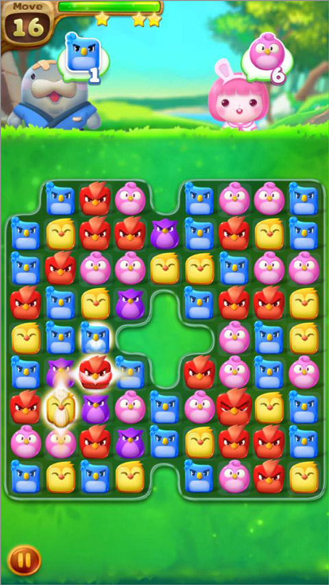 4、点击滑动三个同样颜色的小鸟即可消除;