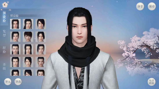 3、左下角有“导入”功能可以导入捏脸数据,“导出”功能可以导出捏脸数据。