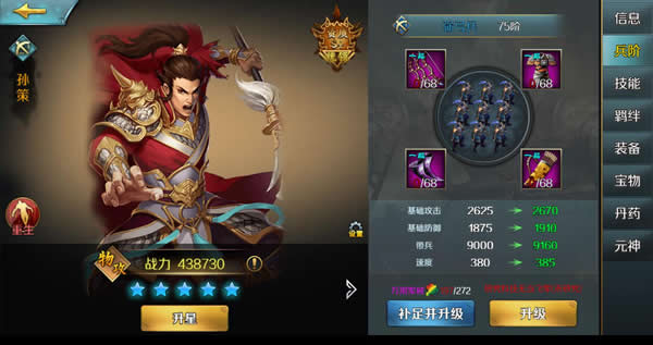 1、兵阶系统是游戏内的一个重要系统,是提升英雄战力的一个重要方式。。