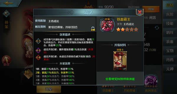(4)阵容的核心英雄是首充【孙策】,【孙策】的主将战法是为己方全体弓兵部队提高攻击力。可以说是团队的灵魂,点睛之笔了。而且提高的还不仅仅是单属性攻击而是通用的攻击力,这就很舒服,剩下的第三名英雄的选择范围就大了很多了。