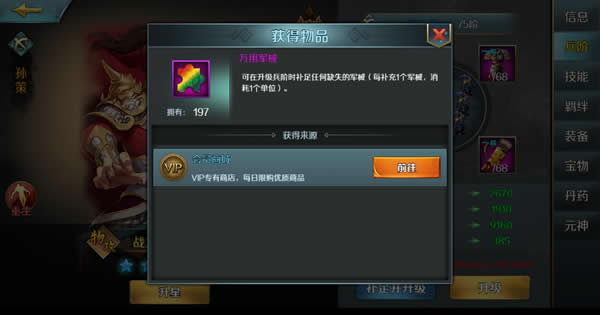 2、但是升级兵阶需要消耗军械,那么如何才能获得军械来提升英雄的兵阶等级呢?