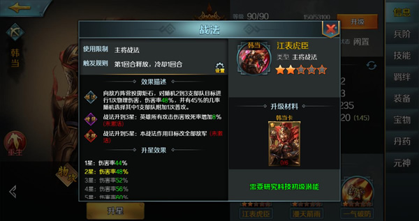 (3)阵容的主力输出英雄是通过任务获得的【韩当】,【韩当】是一名不没有任何控制的纯物理输出型英雄。选择他的主要原因就是因为他是免费获得的而且恰好还是弓兵部队~