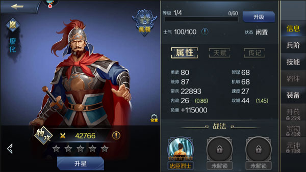 (1)勇将:勇将是武力攻击型的武将,也就是大家熟知的物理攻击型武将,该武将的特点就是物理攻击高,技法伤害也不错,但是物理防御一般,多用于物理输出。