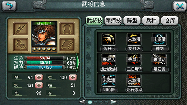 2、属性提升:进阶后的武将在属性上会有显著提升,战斗力也会随之增强。