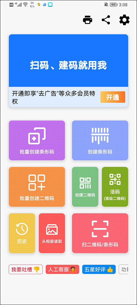 除此之外,二维码和条形码生成器的操作也是极为便捷的,不需要用户去进行太繁杂的操作步骤,只需要选择对于的功能即可跳转,十分的简单。对界面的设计也进行了简化处理,去了一些不必要的软件功能,只保留用户所需要的功能。