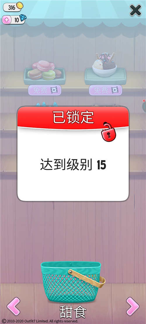 2、可以通过金币或钻石购买各种食物,或者对于免费的食物可以看一定时间的视频,视频结束后,即可获得食物。