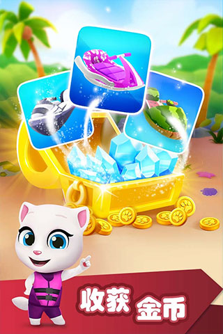 其实这款游戏与传统的敏捷游戏不同,《汤姆猫的摩托艇》中是没有关卡的,也就是说在赛道中是没有终点的。玩家要做的就是在赛道中完成每一个阶段的任务,任务完成后就会立即进入下一个阶段任务。如此说来,本游戏也就没有所谓的“通关”的说法,这个有点像跑酷游戏中的无尽模式的玩法。