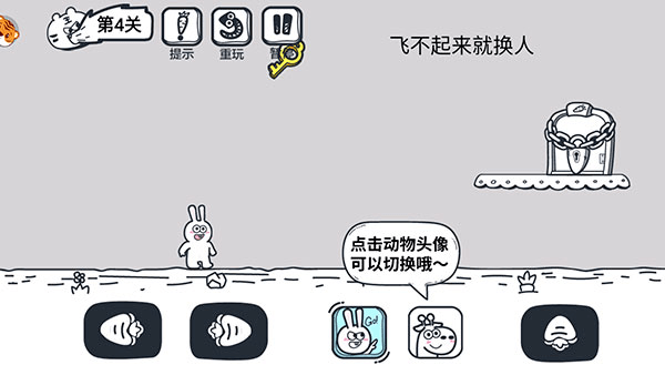 5、有的关卡则需要多名动物伙伴互相配合才能通过,点击下方的头像即可切换角色。