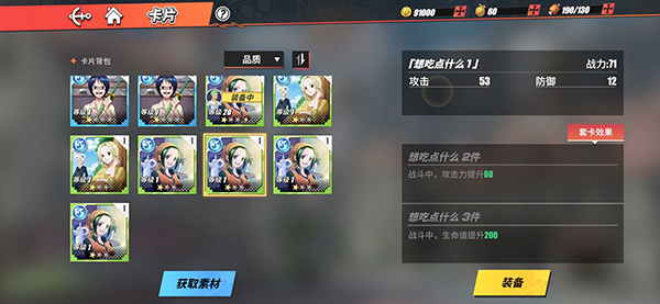 战意卡:这种卡片是所有角色都可以装备的,每个角色在装备战意卡之后,都可以获得卡片固定的属性增益。