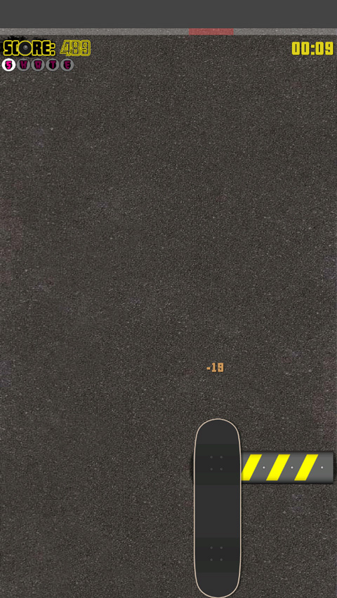 3、当滑板撞到条形障碍物会进行减速以及减少游戏的分数。