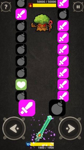 对于游戏的玩法,主要还是以点击为主,与传统的音块滑落的音舞游戏有些相似,通过点击带有“剑”以及其他颜色比较鲜艳的图标来增加COMBO,切记不要点击带有“地雷”标准的图形,否则会连击终止,而且还会减少你的时长。