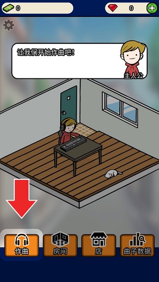 现在让我们学习如何作曲吧!选择“作曲”,每首曲子都应该确定一个主题,选择合适的主题进行组合是非常重要的,好的曲子不仅能吸引更多音乐爱好者,同时也能为你带来不错的收益和人气!