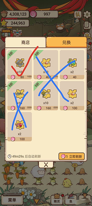 2、由于商店限定的鱼并不能带来更多收益,建议商店先优先买建筑和藏品碎片,有加成。