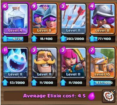 天下武功,唯快不破。随着加农炮的增强,拥有“意大利炮”的快速猪或许将迎来最强势的时代?增强后的土炮能在防守中发挥更重要的作用,能让这套讲究快速灵活的卡组在防守时的硬度提升一个档次。皇室平民房子卡组天梯4600杯技巧这卡组的特点就是前期稳守。然后中期看准机会利用三枪的爆发力造成致命伤害。后期利用法术打本斩杀或者直接四枪+人海强攻。这套卡组是一紫三橙4白。价格低廉,卡牌获取容易。野蛮人房子是10级。其他卡片等级都是处于4811的状态。唯一的紫卡大闪电只有4级,已经足够去除10级的法师和火枪。在4500杯附近够用。