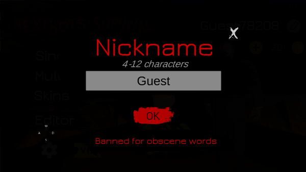 2、进入编辑绰号页面之后,在Guest输入框之内输入你喜欢的绰号,点击ok即可,注意Banned for obscene words,意思就是禁止使用淫秽语言。这样你的名字就改好啦!