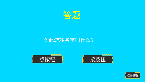 点击按钮是一款全新的休闲趣味问答游戏,画风简约,主要以文字和按钮的形式进行,玩家需要根据屏幕上出现的问题,选出正确的选项,然后点击它,正确的话则进入下一关,反之则失败哦。同时游戏的操作过程很简单,有些按钮可以点,有些不能点,需要玩家们自行的判断,游戏的话语也很搞笑,需要能更好的去找到真的按钮。在玩法上,点击按钮游戏不仅有点击式的按钮,还有手摇杆式的控制器,并且每一关的内容都是不一样的,甚至是闯关的类别都相差的非常的悬殊,玩起来非常具有挑战性和趣味性,你有信心通过成功吗?感兴趣的小伙伴快来下载挑战吧!