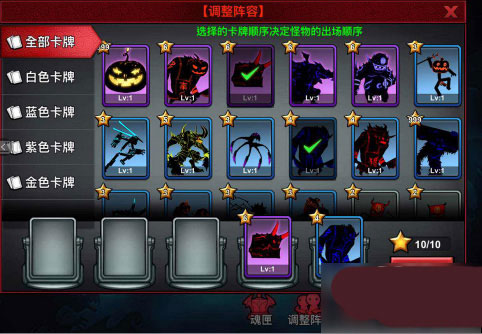召唤师每单局比赛最多派遣5只魂兽出战,每只魂兽都有系统评分,初始总出站魂兽不能超过10星,对战胜利失败都会得到魂兽卡牌奖励。