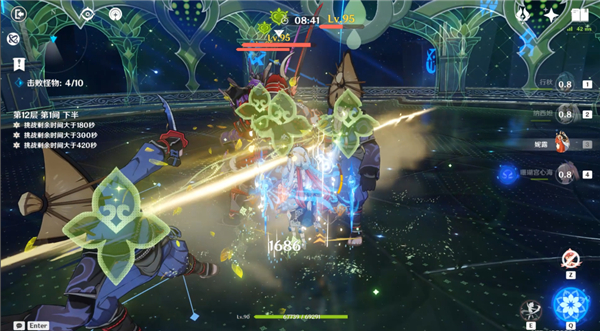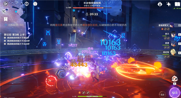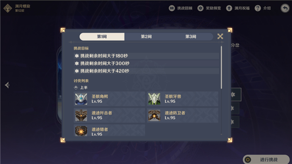12-3上半是统辖矩阵,需要雷元素角色破除隐身机制加速击杀;而下半间的虽有原魔没有过高的针对性,都是较硬的精英怪,推荐搭配对群能力较强的队伍即可