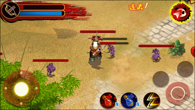 6、目前是第一关,玩家控制的熊猫大侠是一位擅长远程操作的人物,需要玩家与怪物拉开距离,然后向敌人射击;