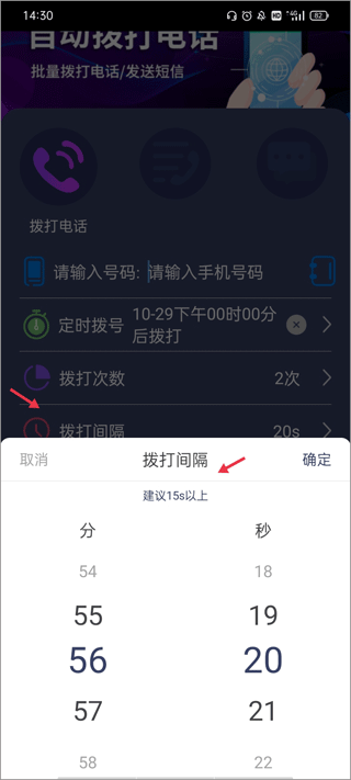 4、第四步要设置的是拨打电话的时间间隔,不能太近,也不能太久,根据你自己的需要来设置。