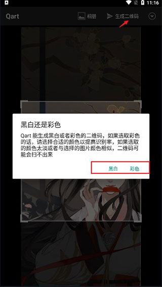 3、从相册中选取需要制作的图片,点击生成二维码;