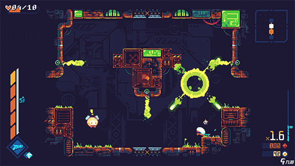 《灾厄逆刃》采用了鲜亮明快的像素画风,操纵主角在狭小地牢里闪转腾挪,伴随着Joonas Turner作曲的动感BGM,尽享类银河恶魔城的狂野粗豪!