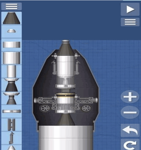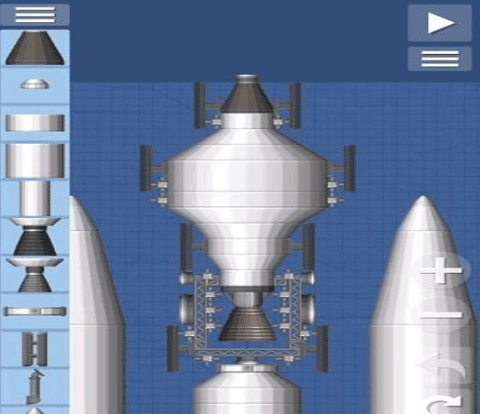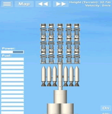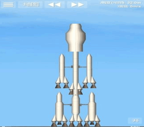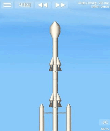 这个火箭是比较简单的火箭样式,里面搭载了一个小型的卫星,超长的燃料箱以及两个辅助的燃料箱提供更多的燃料补给;