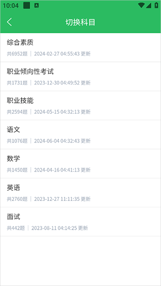 2、目前支持的科目除了语文、数学、英语、职业技能等基础高职科目外,还可以支持综合素质、面试等科目刷题