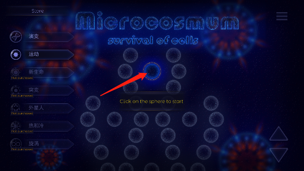 1、在本站下载安装该游戏的中文版,打开进入点击中间蓝色的细胞。