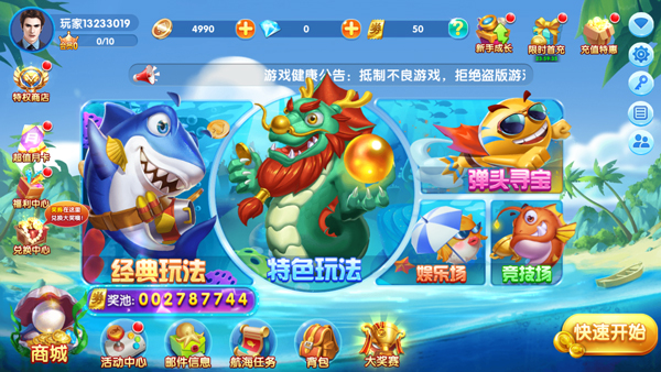 另外,捕鱼大奖赛游戏内提供了多种玩法模式,除了经典玩法,捕鱼大奖赛还有龙宫寻宝、女娲秘海等特色玩法,不同渔场的特色也不同,还有丰富的奖励等你来赢取,非常的不错。对捕鱼感兴趣的小伙伴不妨下载试试看,相信一定不会让你失望的。