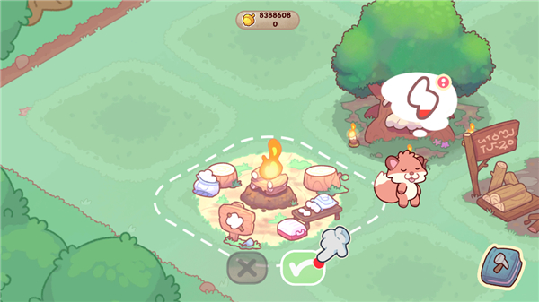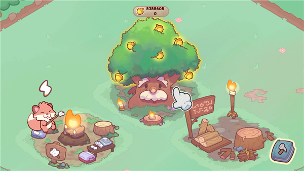 游戏中,玩家需要通过收集金色橡子在商城中来兑换各种各样的动物以及场景,比如篝火、花园、温泉、钓鱼、伐木场等等各种的场景,为这些可爱的动物建造梦幻般的新场地,并建立最可爱的社区,为可爱的动物们建造一片悠闲和平的生活。