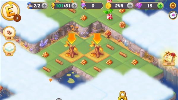 2、把木头合并,得到小木屋,再把小木屋合并,建成木头豪宅。