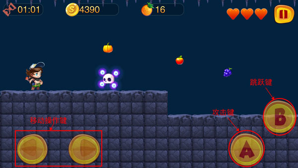 游戏玩法类似于红白机时代的冒险岛玩法,玩家将通过控制人物的移动、跳跃和攻击按键来完成对本关卡的挑战。