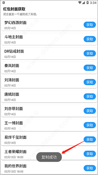 1、下载安装好这个红包封面获取app即可运行,进入即可看到海量红包可领取,先点击“获取”;