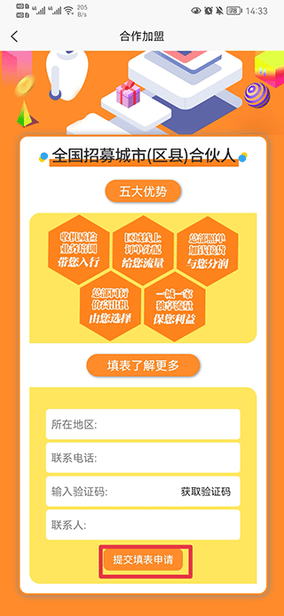 一、打开软件,点击我的,在更多工具栏中点击合作加盟。