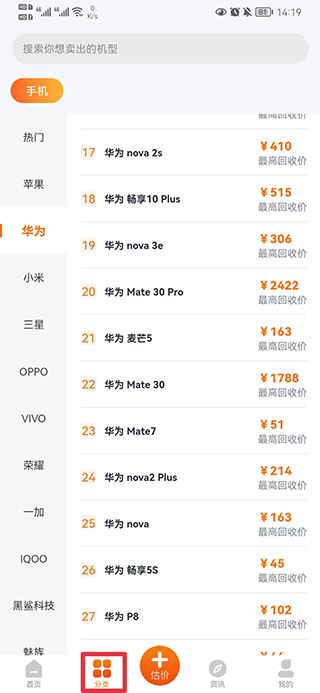 一、首先打开软件,点击分类,选择正确的手机型号。