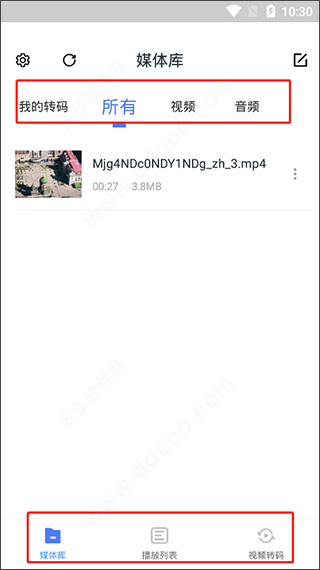 1、安装运行软件即可进入主界面,划分了媒体库、播放列表、视频转码;