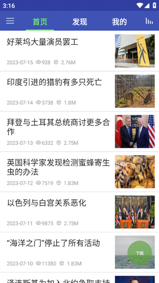 1、打开欧美双语头条官方版,进入首页就可以看到最近的新闻都在软件里有展示